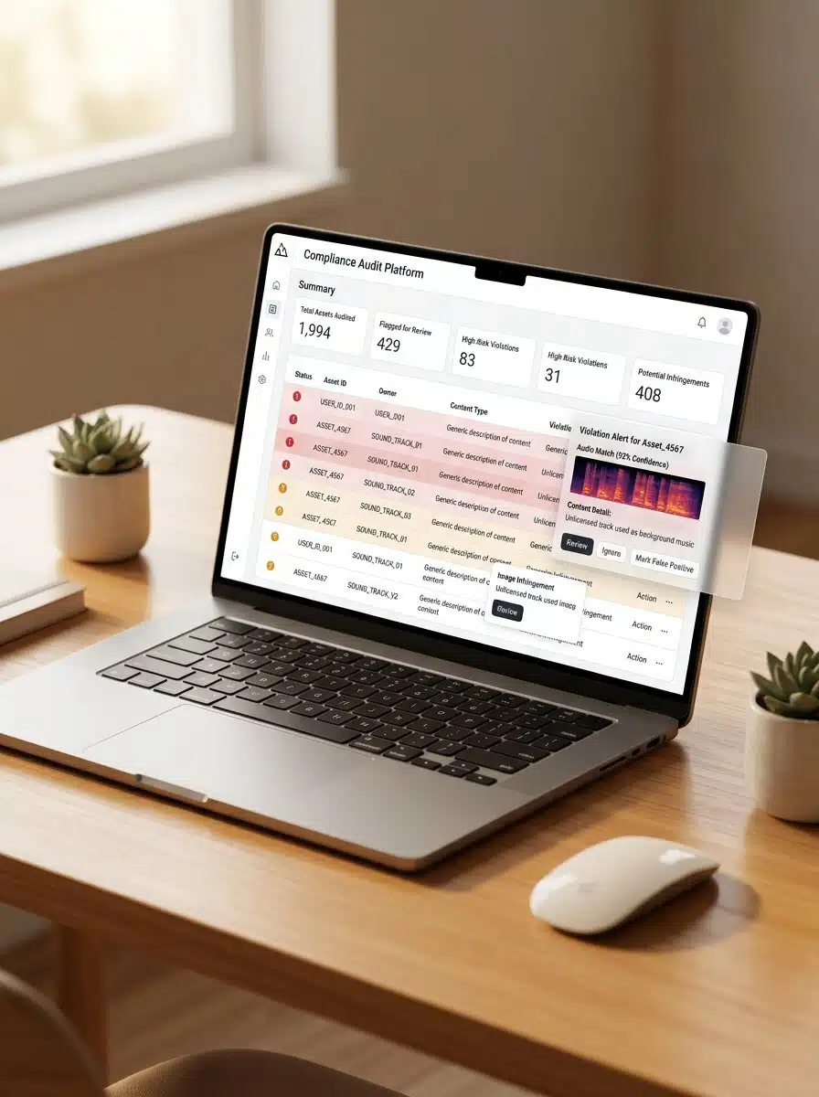 With over 5,600 posts spanning multiple years, manual review was not just slow, it was fundamentally unreliable. Short audio clips and fragmented music use are precisely the infringements most actively pursued by rights holders, and the ones most routinely missed by human reviewers. A single missed claim from a major label can run to seven figures.